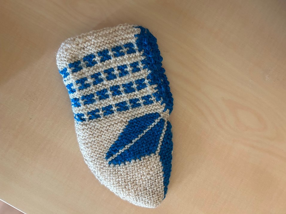 Nakışlı Mavi Örgü Patik