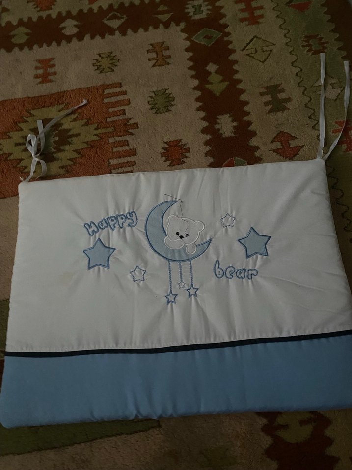 Beşik için iki kısa iki uzun kenar fermuarlı çıkarılıp yıkanıyor ve yorganı var hafif fermuarlı hepsi temiz sadece yorganında sarı leke var çıkmıyor