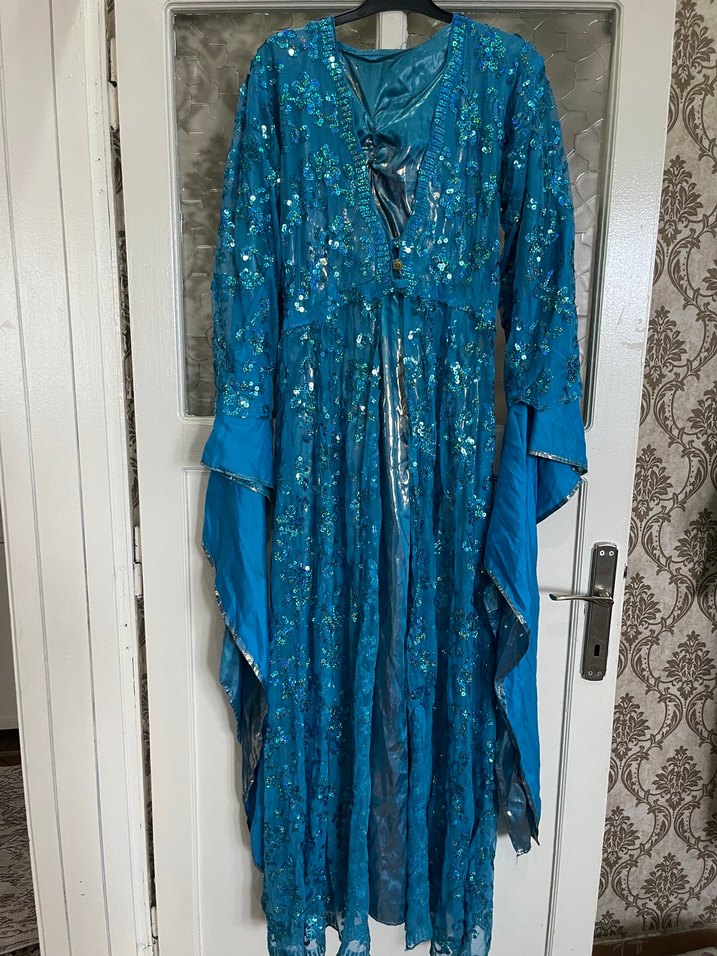 Nakışlı Mavi Uzun yöresel elbise