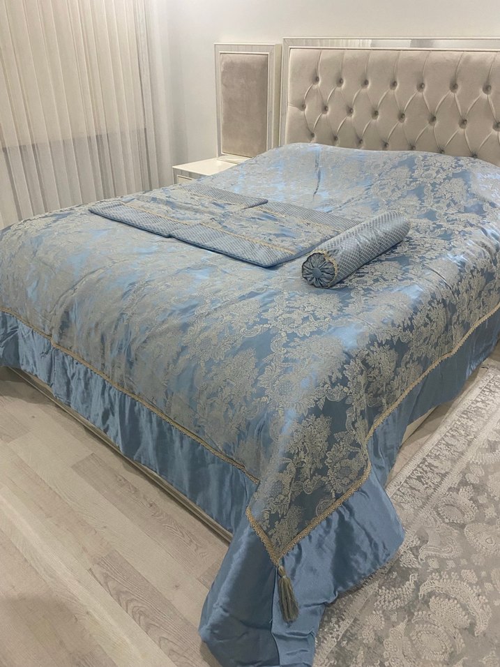 Nakışlı Mavi ve Gri Yatak Örtüsü