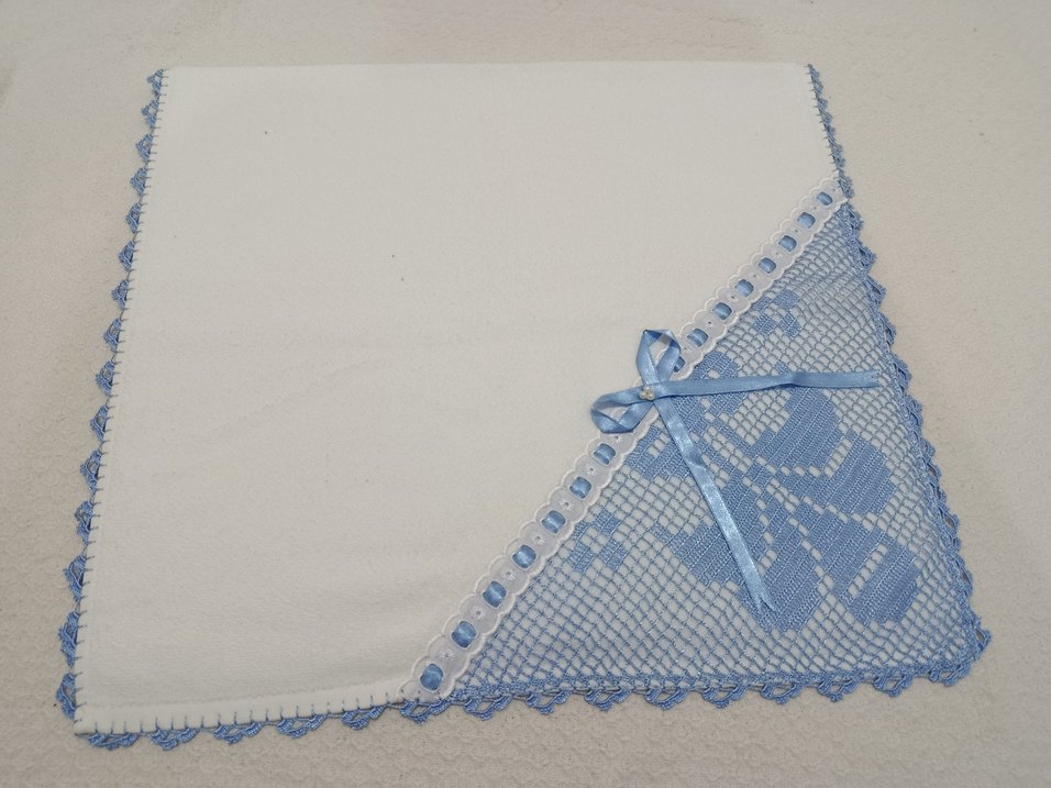 Pastel mavi renkte, nakış işlemeli ve süslü fiyonk detaylı yumuşak dokulu havlu. çeyizimden bir ürün hiç kullanılmadı. havlusu beyaz renk