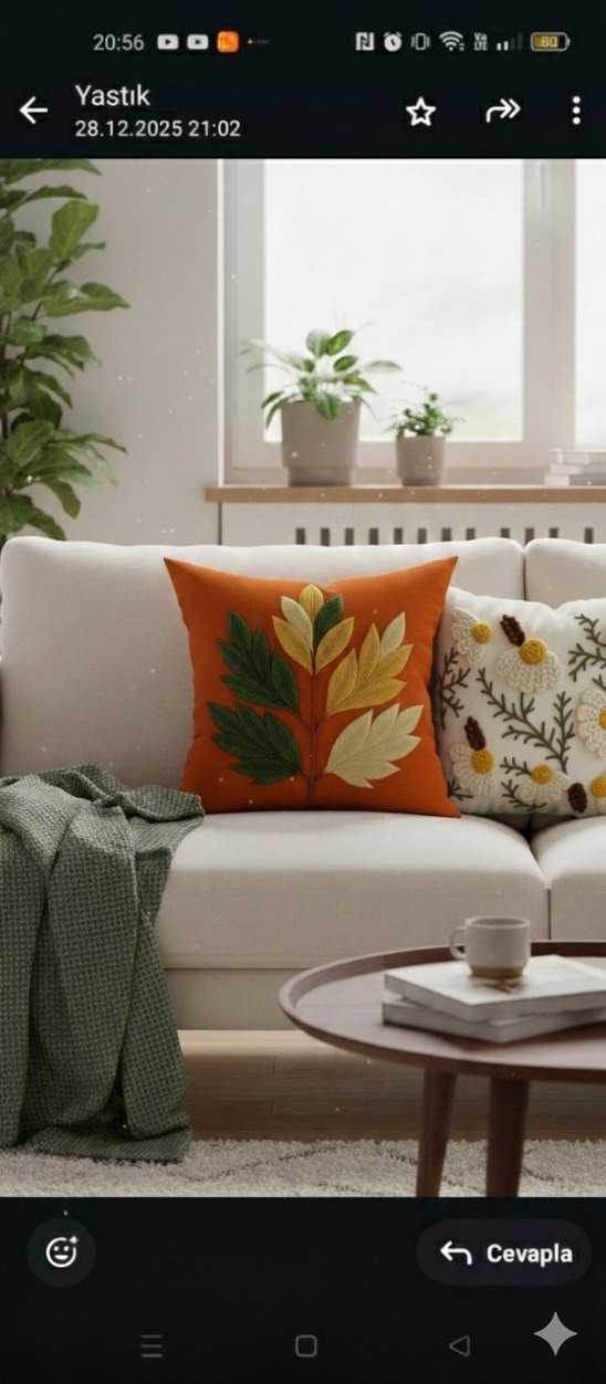 Modern klasik tarzda nakışlı yaprak desenlerine sahip beyaz yastık kılıfı, odanıza zarif bir dokunuş katıyor. 3 boyutlu,raşel kadife kumaştır 43x43 ebatı vardır
