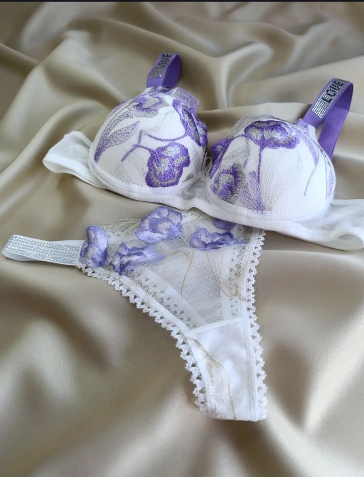 Nakışlı Mor Bohem Sütyen Takımı