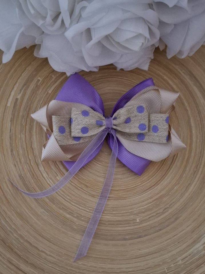 Nakışlı Mor Fiyonklu Çocuk Toka
