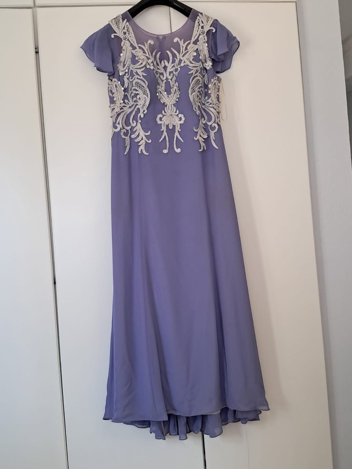 Nakışlı Mor Uzun Kadın Abiye Elbise