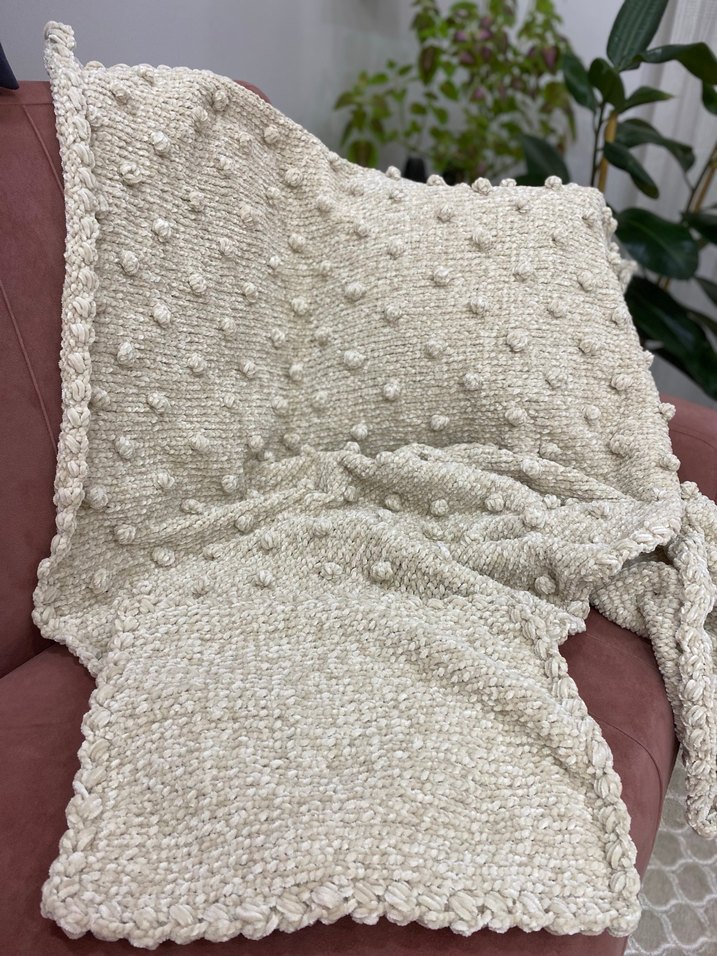 Açık kahve kadife renklerde, kabartmalı nakışlı desenli örgü çocuk battaniyesi, yumuşak ve rahat bir doku sunar. Bebek yastık kılıf hediyeli