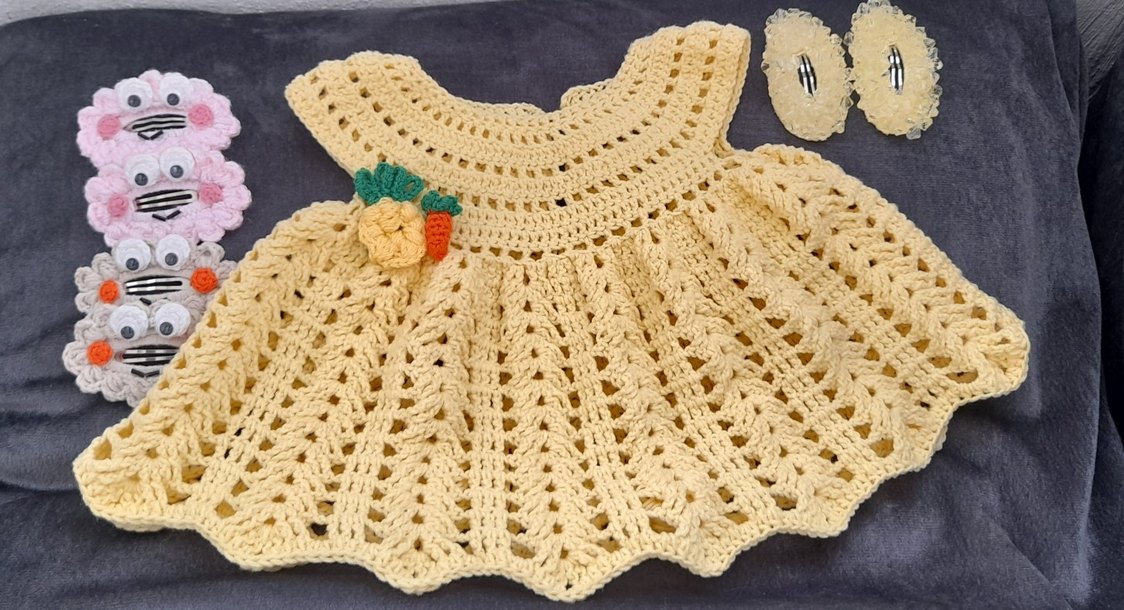 Nakışlı Örgü Bebek Kız Elbise Seti