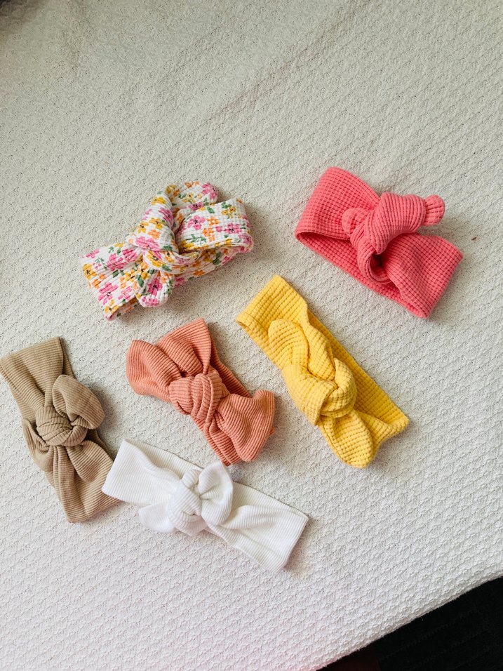 Soft Renkler Nakışlı Örgü Bebek Saç Bantları - Çok Renkli