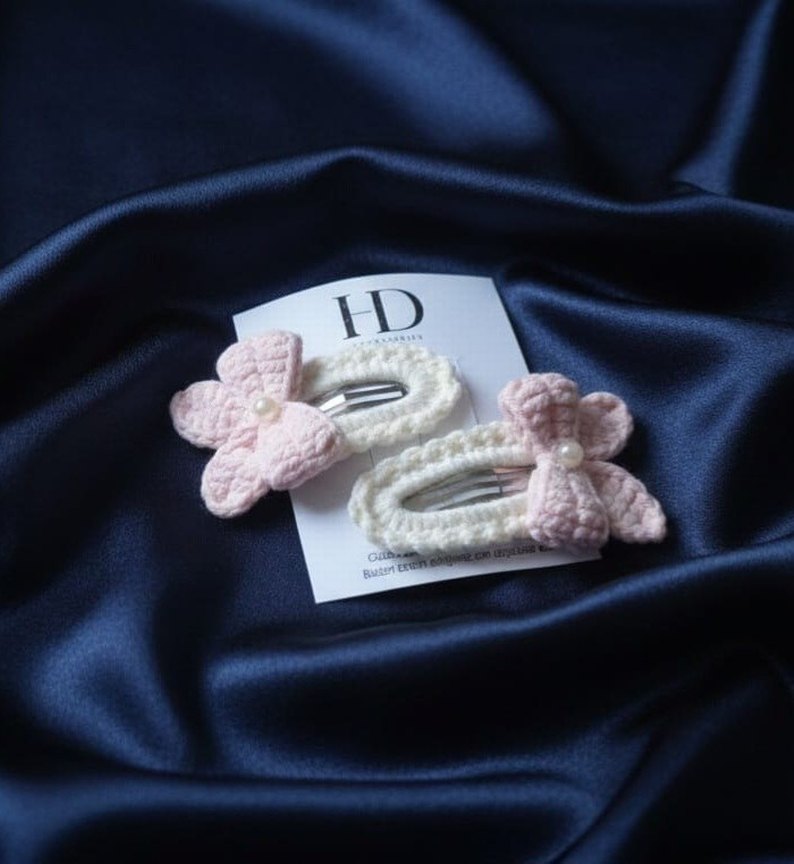 Nakışlı Örgü Çiçekli Bebek Toka Seti