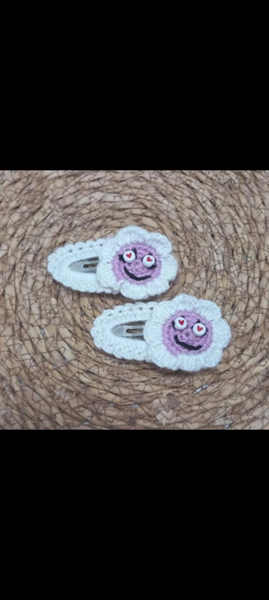 Nakışlı Örgü Çiçekli Çocuk Toka Seti