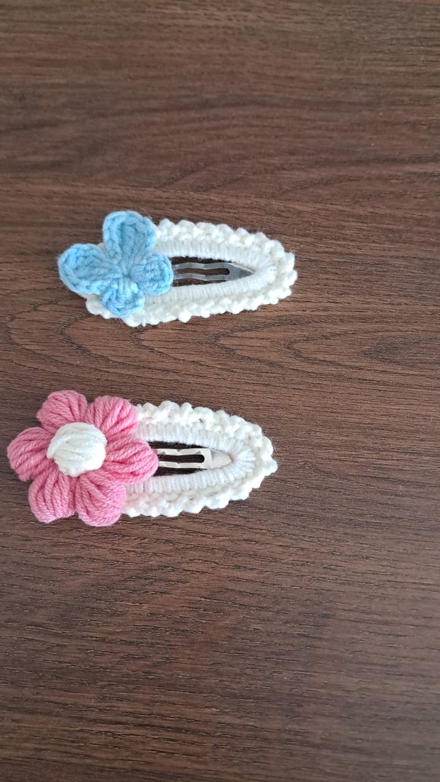 Nakışlı çiçek ve kelebek desenli pastel renklerde örgü çocuk saç tokaları, sade ve bohem tarz için uygun.Siparis alinir