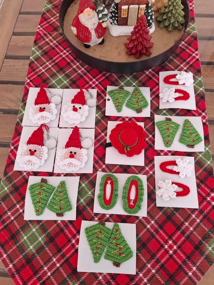 Nakışlı desenlere sahip renkli örgü çocuk saç tokaları, Noel temalı klasik tasarımlar sunar. adet 80 tl
