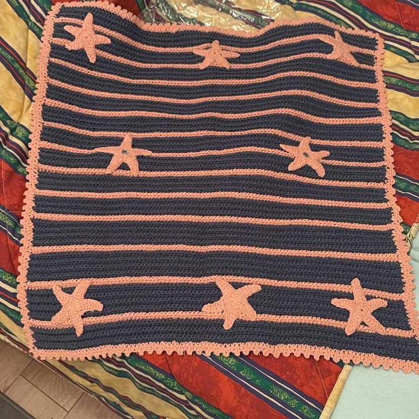 Bu çocuk battaniyesi, nakışlı yıldız desenli koyu çok renkli örgü kumaştan yapılmıştır ve sıcaklık ile dekoratif bir dokunuş sunar. Sıfır ürün hiç kullanılmamıştır