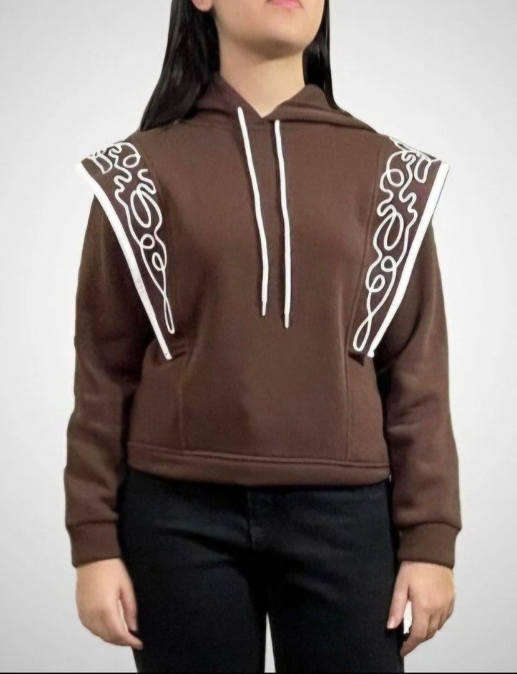 Nakışlı Örgü Detaylı Kahverengi Kadın Sweatshirt