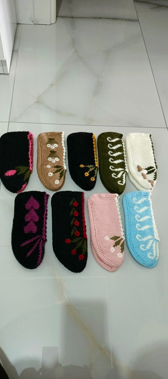 Nakışlı Örgü Kadın Ev Terlikleri