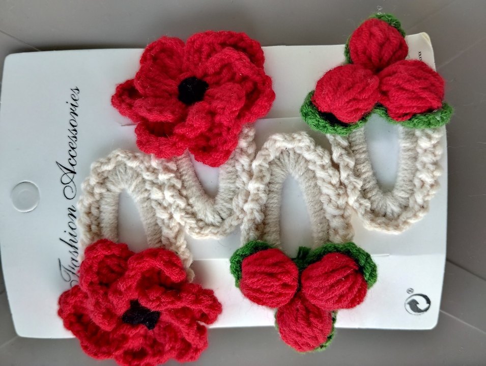 Renkli nakışlı kırmızı çiçeklerle süslenmiş örgü kız çocuk saç tokası seti, saçlara canlılık katar. çift 80 tldir