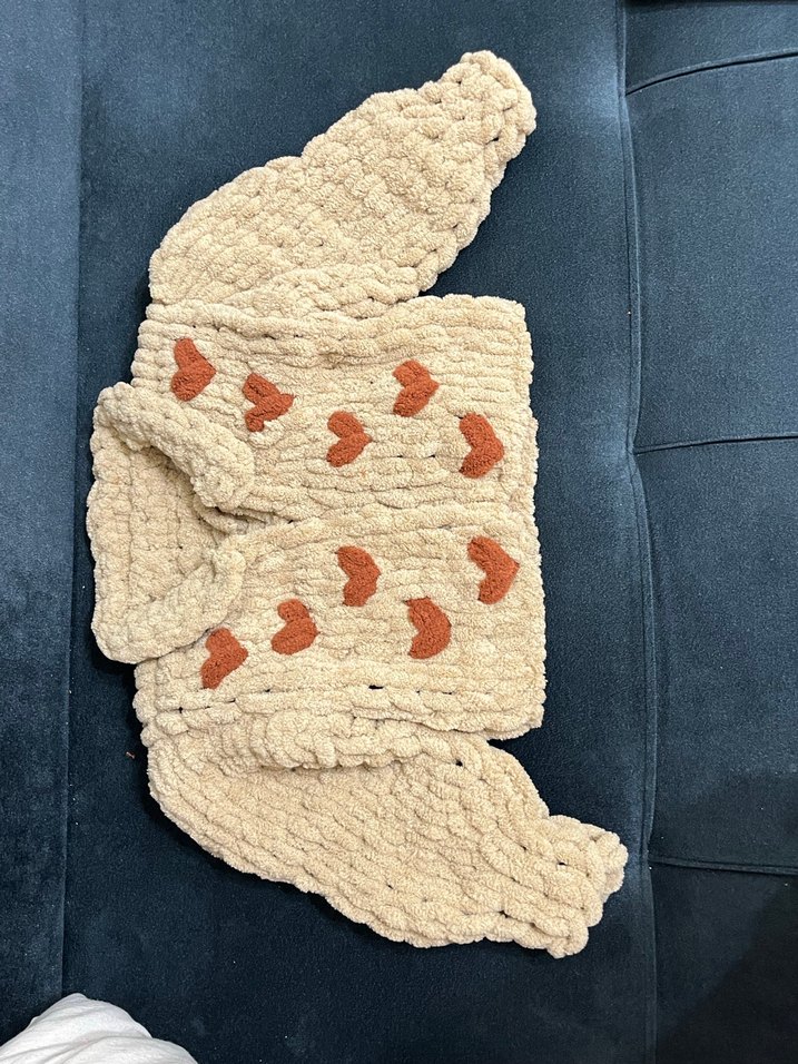 Nakışlı kalp desenli, uzun kollu, beyaz örgü kız hırkası, bohem tarzda ve vücuda oturan kesimdedir.