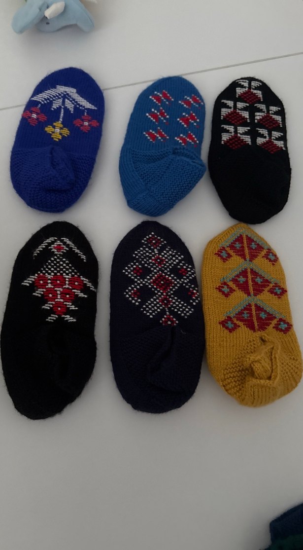 Nakışlı desenlere sahip, çeşitli koyu ve canlı renklerde örgü erkek ev çorabı, rahat ve klasik tarz sunar. 6 tane