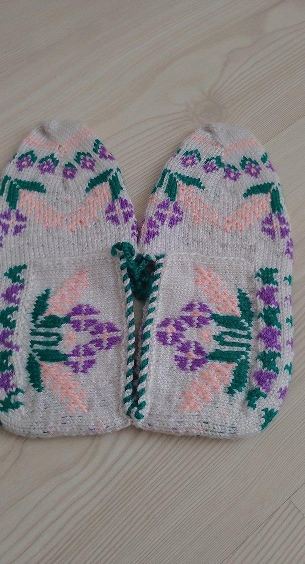 Pastel renklerde nakışlı çiçek desenli, örgü kadın terlikler, rahat günlük kullanım için uygundur.