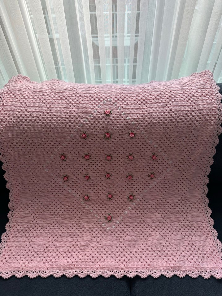 Nakışlı Örgü Pembe Bebek Battaniyesi