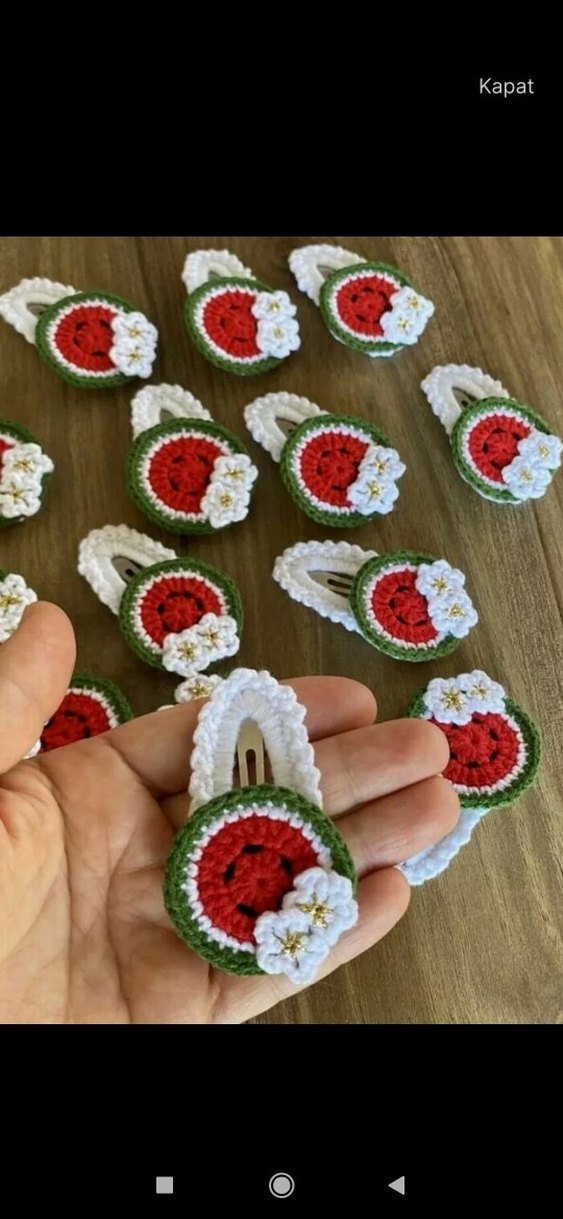 Nakışlı karpuz ve çiçek desenli, örgü renkli bohem tarzı çocuk saç tokaları.