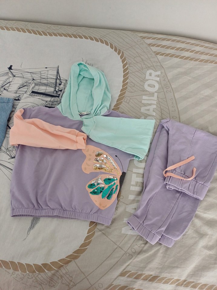 Pastel renklerde, nakışlı ve örme uzun kollu üst ile uyumlu pantolondan oluşan bebek kız takımı. Yumuşak ve rahat kumaşlıdır.