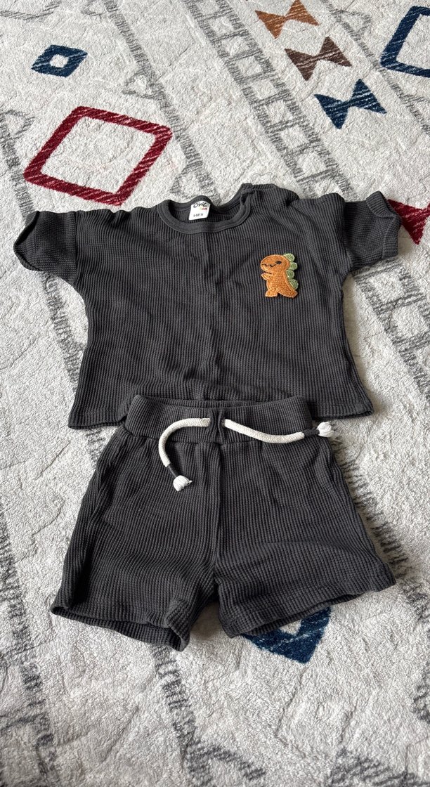 Nakışlı Örme Erkek Bebek Kısa Kollu Takım