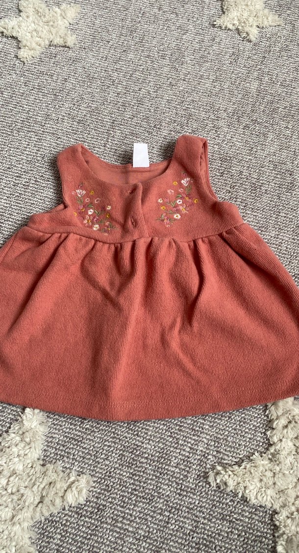 Nakışlı çiçek detaylı, kolsuz, örme kız elbisesi.