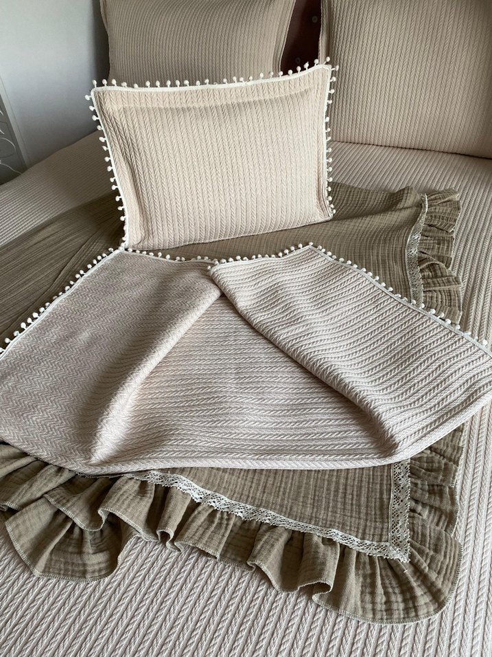 Nakışlı örme kumaş bebek pike ve yastık ..Bej. 100*120