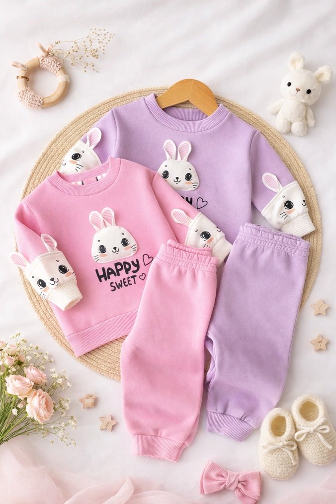 Nakışlı Örme Uzun Kollu Bebek Kız Takımı