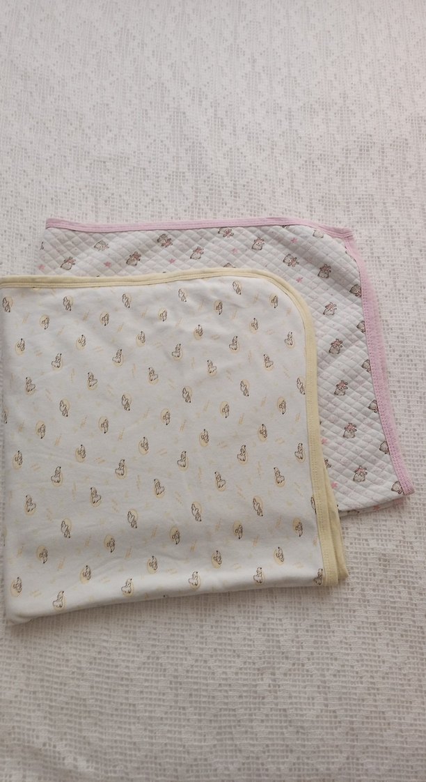 İki adet beyaz pastel renkte, yumuşak pamuktan yapılmış, ince nakış desenli bebek battaniyesi seti. Kenarları pastel renklerle tamamlanmıştır. Temizdir sorunsuz