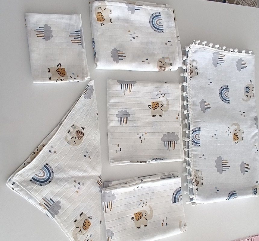 Nakışlı Pamuklu bebek pike seti 6 parça