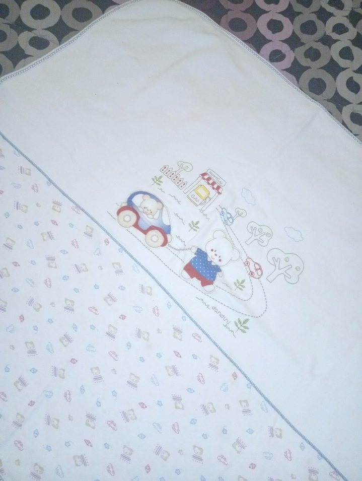 Nakışlı Pamuklu Beyaz Çocuk Battaniyesi