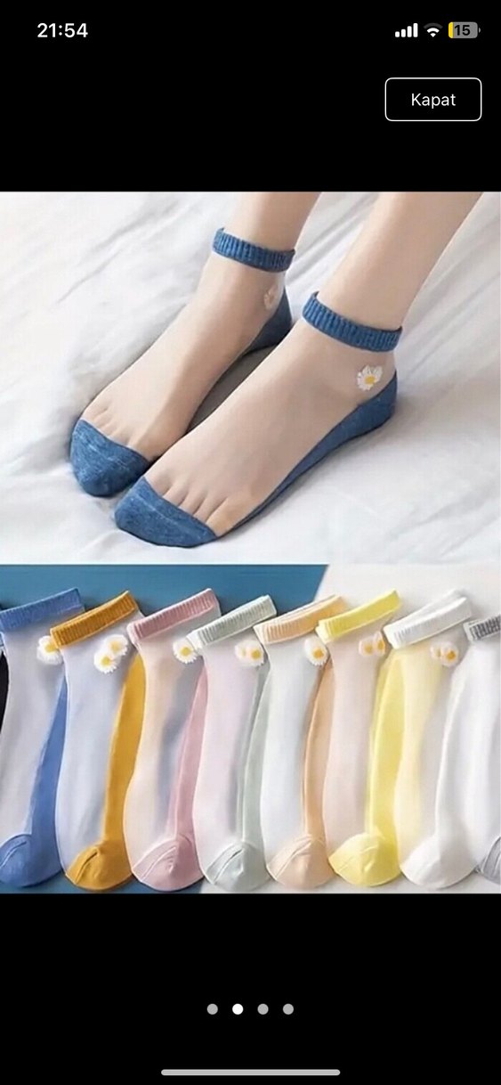 Pastel renklerde, pamuklu, nakışlı çiçek detaylı kız çorapları seti, renkli burun ve manşetlere sahip. 8 çifttir