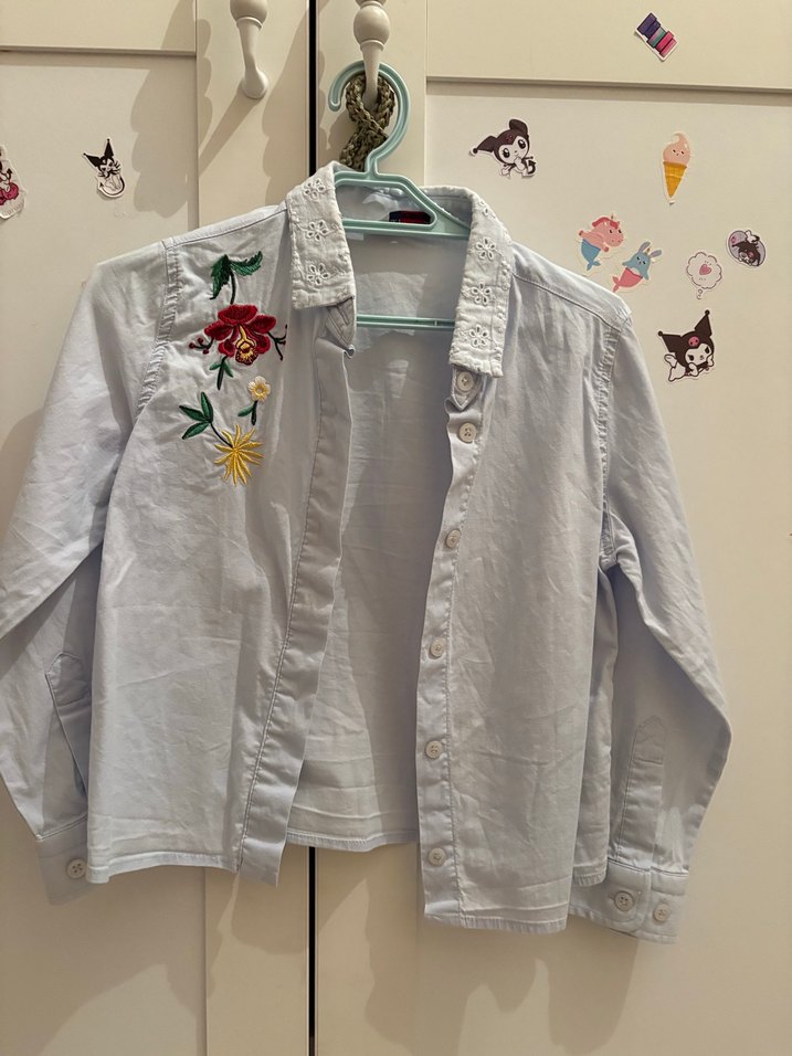 Pamuklu, beyaz uzun kollu gömlek, yakalı ve nakışlı çiçek desenlerine sahip. Bol kesim ve düğmeli ön kısmı ile bohem tarzını yansıtır.