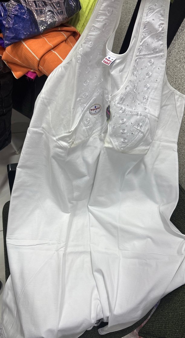 Nakışlı çiçek desenleri ve parlak görünüme sahip beyaz gecelik, yumuşak ve rahat yapıda. 8 numara kadın gecelik
