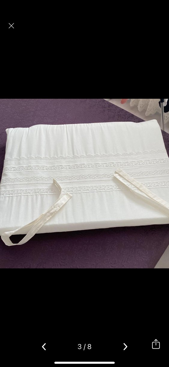 Nakışlı desenlere ve bağlama iplerine sahip parlak beyaz yastık kılıfı, yatak takımlarına zarif bir dokunuş katar. Yatak kenar koruyucuları ile birlikte