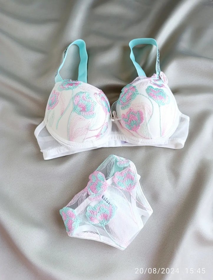 Nakışlı Pastel Bohem Beyaz Sütyen Takımı