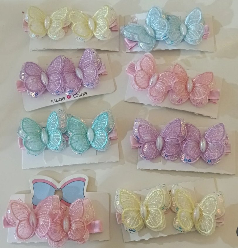 Nakışlı Pastel Kelebekli Çocuk Toka Seti