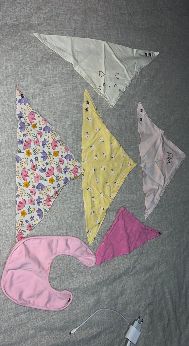 Nakışlı detaylara sahip, pastel tonlarda çeşitli desenlerde bebek önlükleri seti.