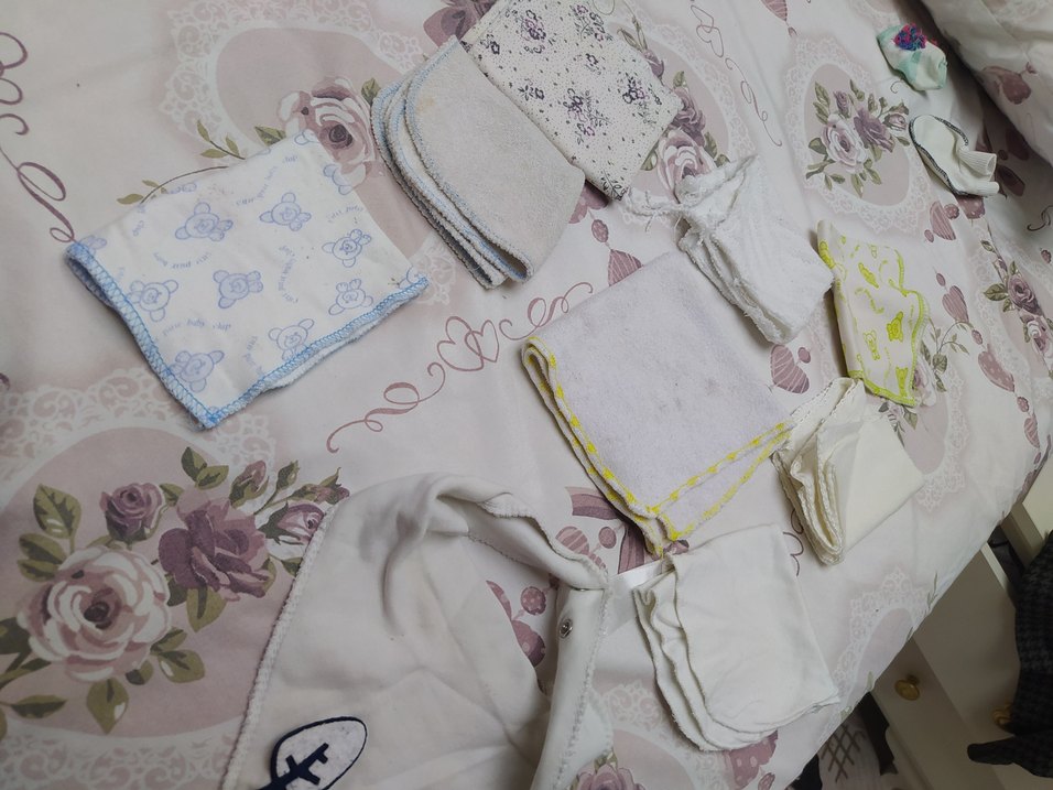 Nakışlı desenlere sahip beyaz pastel renkli çocuk uyku tekstili, yumuşak kumaştan üretilmiştir. ağız mendili