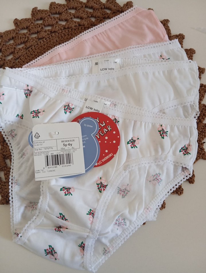 4 lu set Nakışlı çiçek desenli beyaz külotları, pastel renklerde ve bohem tarzda. Normal boyda, dantel detaylı birden fazla parça içerir.