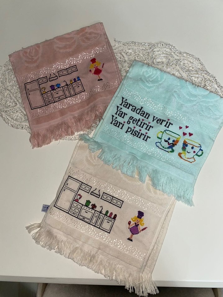 Nakışlı Pastel Renkli Mutfak Havluları
