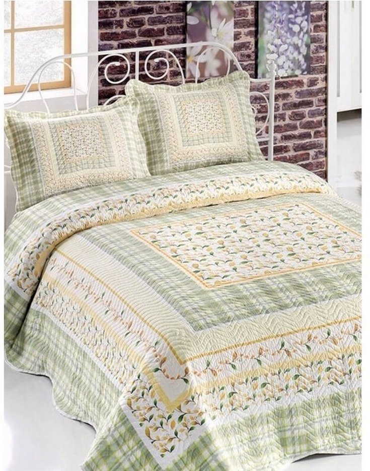 Nakışlı Pastel Yeşil Yatak Örtüsü