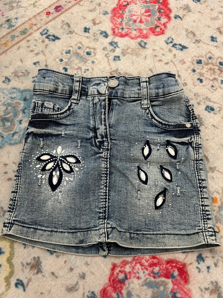 Nakışlı Payetli Kız Çocuk Kot Etek