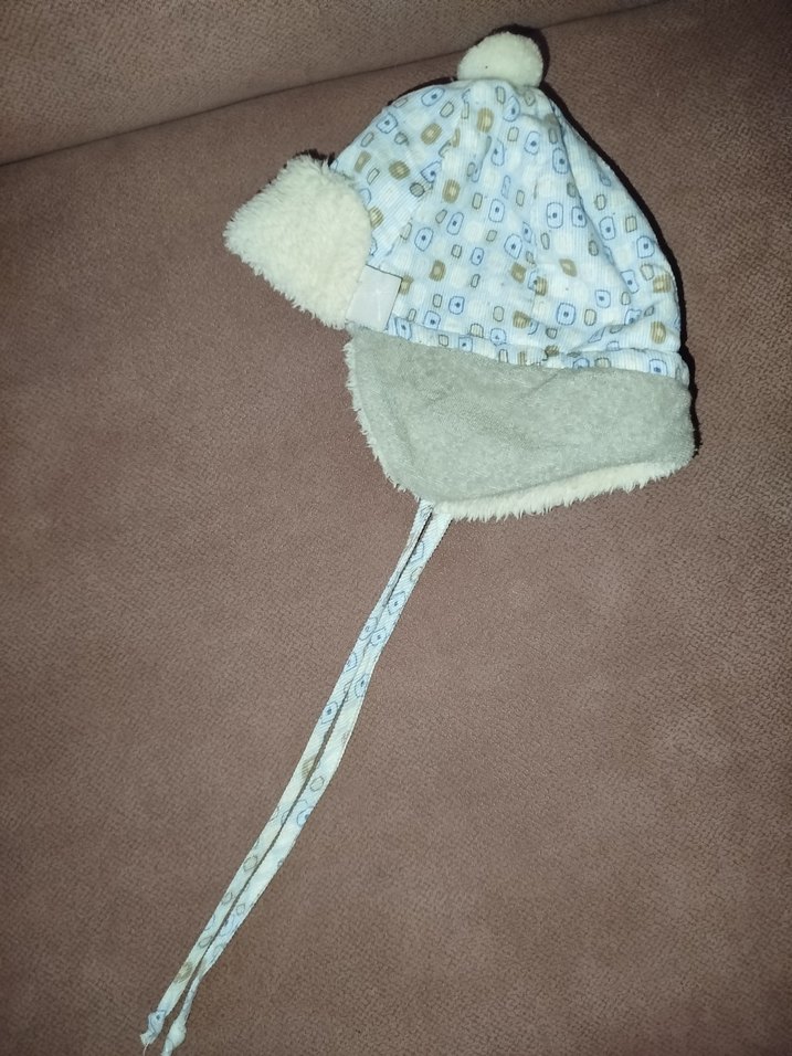 Nakışlı desenlere ve peluş detaylara sahip pastel mavi gri çocuk bere, sıcak tutar ve retro, bohem tarz sunar. Bağlama ipleri mevcuttur.