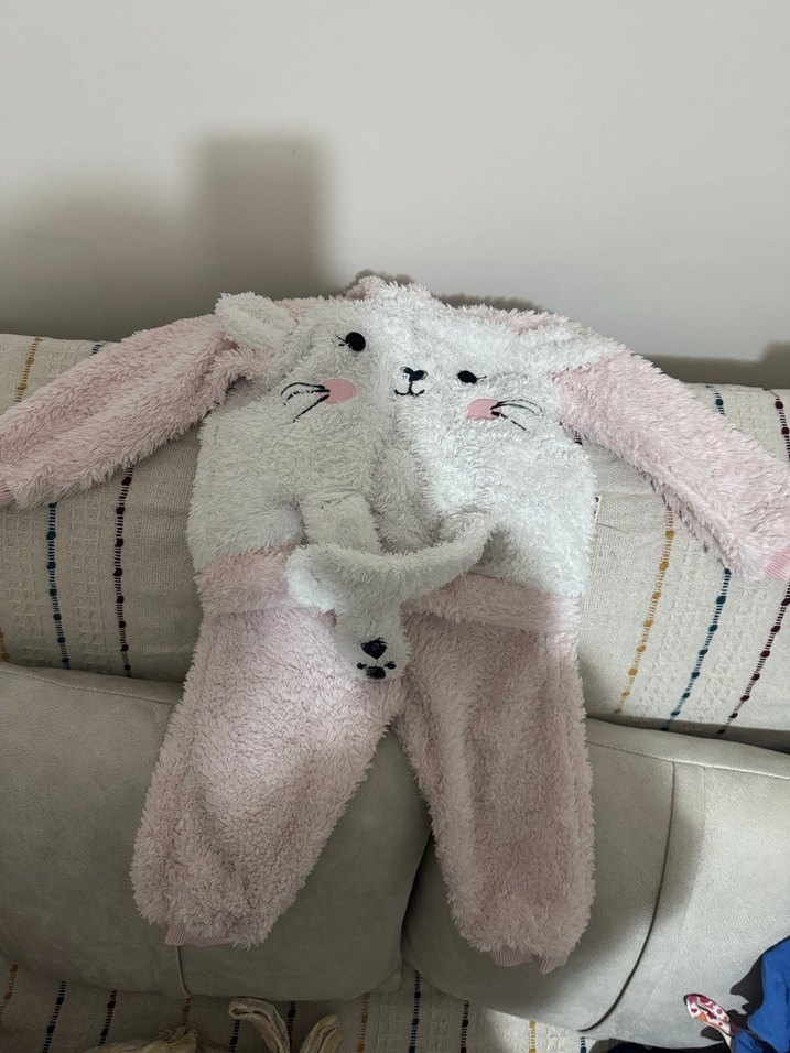 Nakışlı yüz detayları ve yumuşak peluş kumaşıyla pastel pembe bebek tulumu, rahat ve sevimli bir normcore tarz sunar.