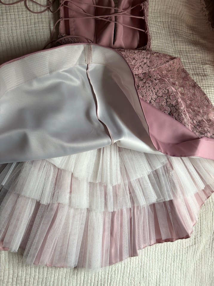 Bu pembe, nakışlı ve askılı kollara sahiptir. Modern klasik tarzda, vücuda oturan kesimiyle dikkat çeker.