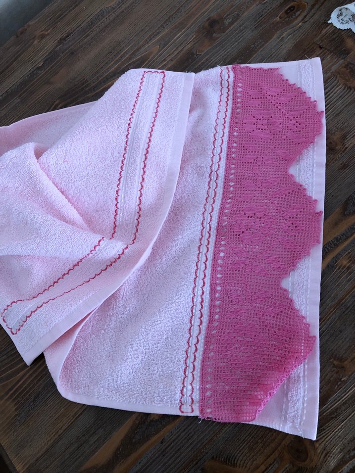 Bu pastel pembe havlu, nakışlı detaylara ve geleneksel bir stile sahiptir. Yumuşak ve emicidir. Markası fiestadır