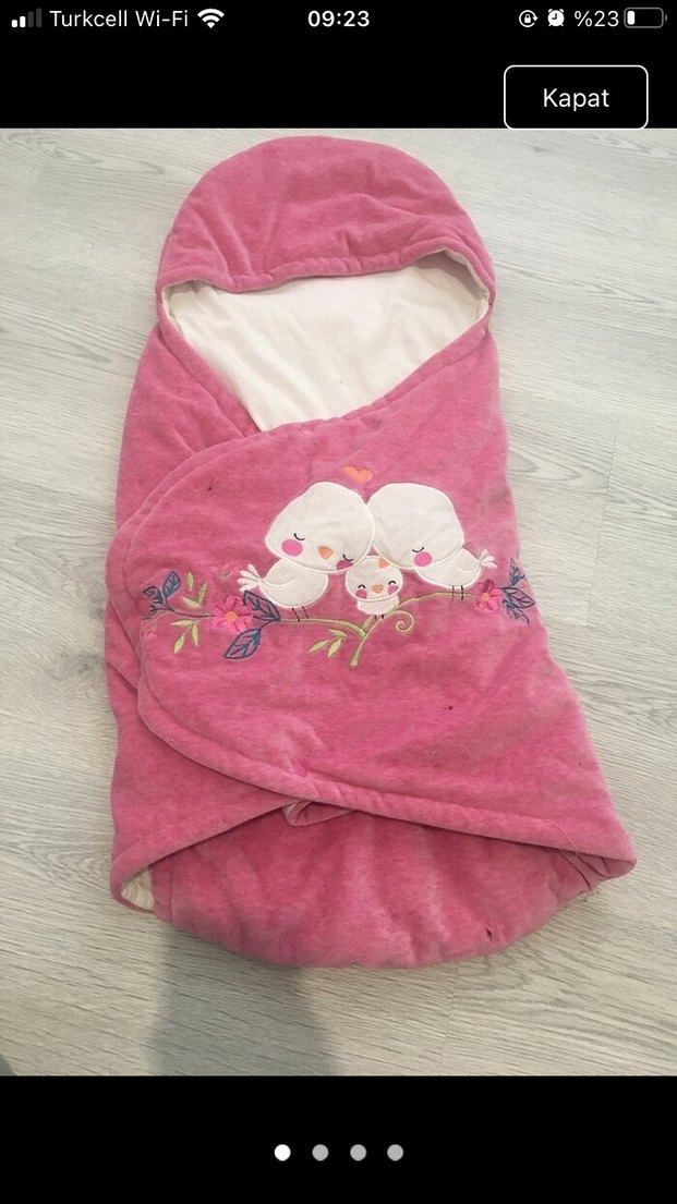 Nakışlı Pembe Bebek Battaniyesi Kapüşonlu kundak